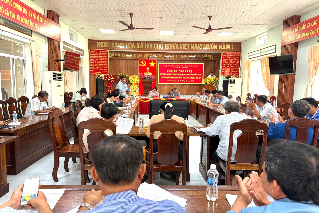 Chiều ngày 26/02/2026, xã Tuy An Đông tổ chức Hội nghị hướng dẫn quy trình tiếp xúc cử tri vận động bầu cử cho những người ứng cử đại biểu Hội đồng nhân dân xã Tuy An Đông, nhiệm kỳ 2026 – 2031.