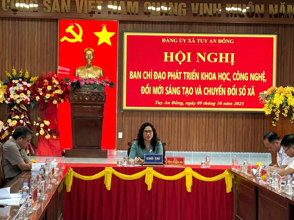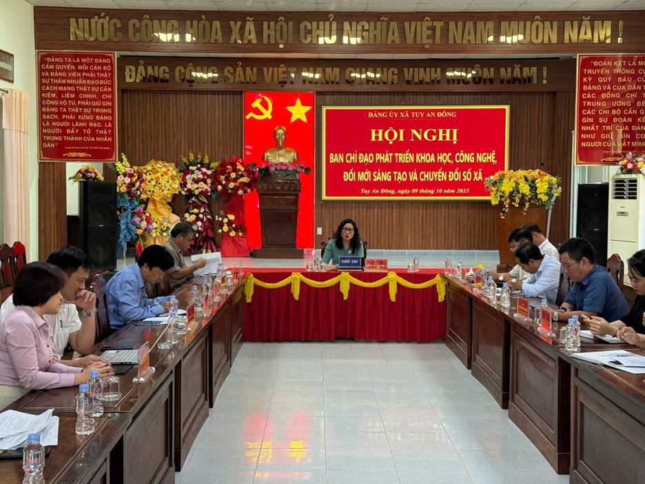 Chiều ngày 09/10/2025, tại Hội trường Đảng ủy xã Tuy An Đông, Ban Chỉ đạo phát triển khoa học, công nghệ, đổi mới sáng tạo và chuyển đổi số xã tổ chức Hội nghị đánh giá tình hình triển khai thực hiện các nhiệm vụ trọng tâm về phát triển khoa học, công nghệ, đổi mới sáng tạo và chuyển đổi số trên địa bàn xã.