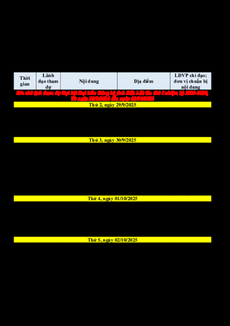 Tài liệu đính kèm | File đính kèm | LỊCH CÔNG TÁC CỦA CHỦ TỊCH, CÁC PCT UBND XÃ Tuần 39 (từ ngày 29/9/2025 – 03/10/2025) | |