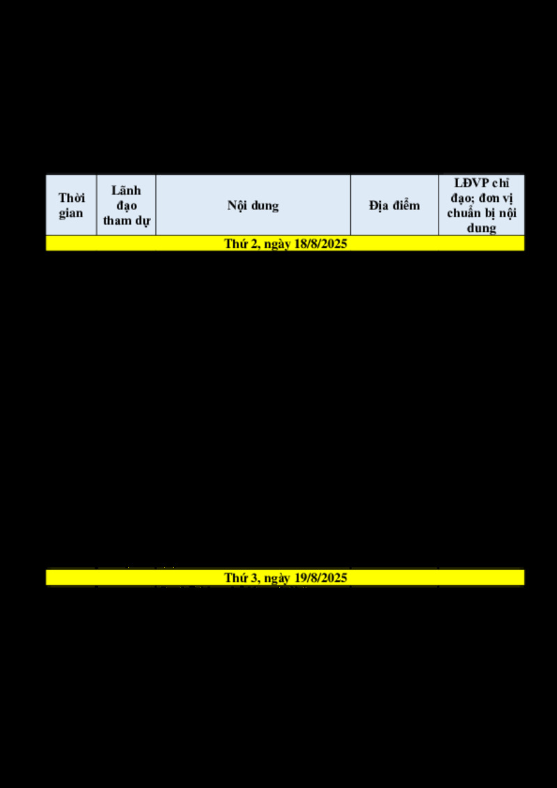 Tài liệu đính kèm | File đính kèm | LỊCH CÔNG TÁC CỦA CHỦ TỊCH, CÁC PCT UBND XÃ Tuần 33 (từ ngày 18/8/2025 – 23/8/2025) | |