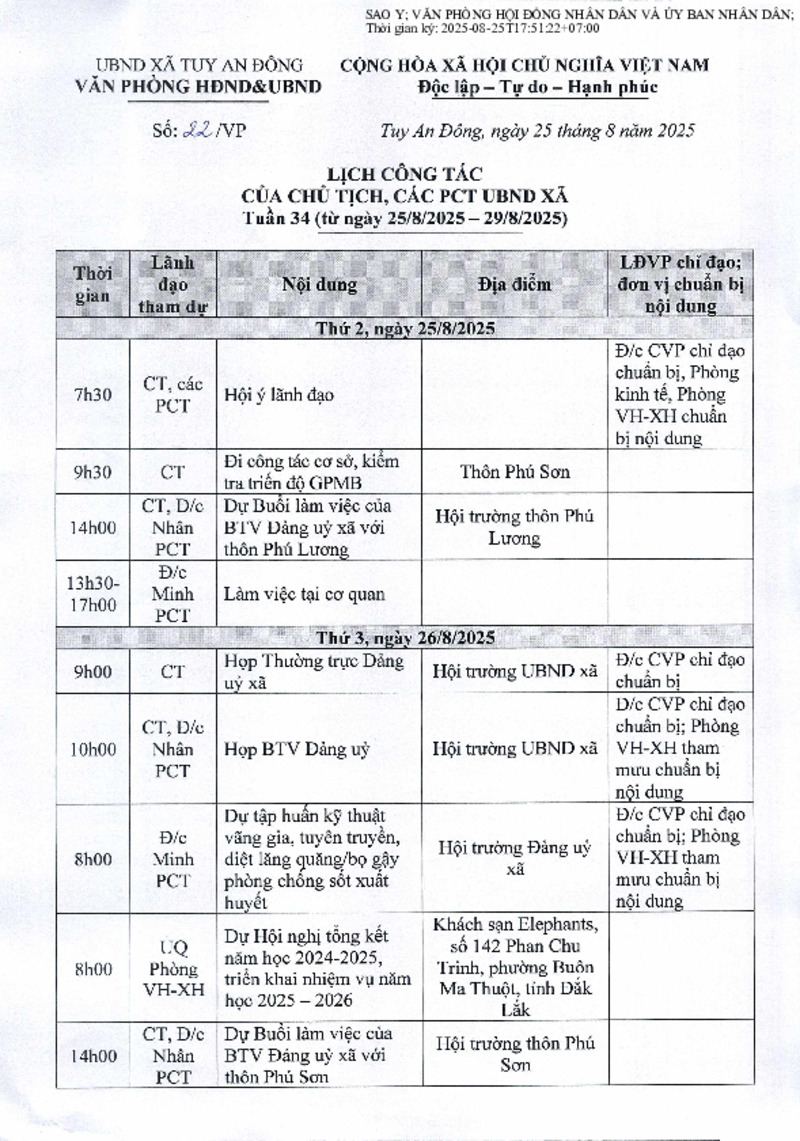 Tiêu đề văn bản | LỊCH CÔNG TÁC TUẦN 34 CỦA CHỦ TỊCH, CÁC PHÓ CHỦ TỊCH UBND XÃ | ||