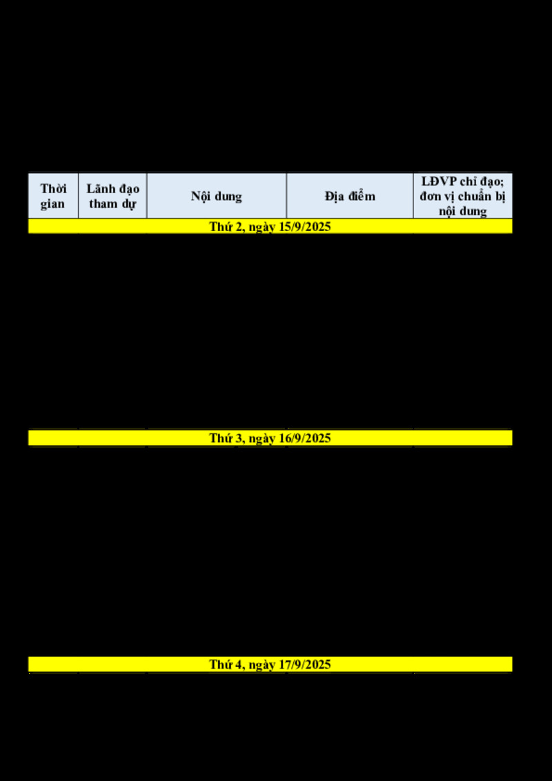 Tiêu đề văn bản | lLỊCH CÔNG TÁC CỦA CHỦ TỊCH, CÁC PCT UBND XÃ Tuần 37 (từ ngày 15/9/2025 – 19/9/2025) | ||