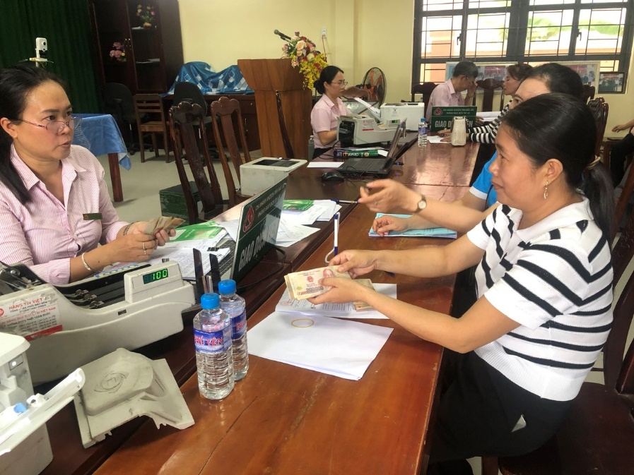Ngân hàng chính sách xã hội Tuy An đang giải ngân cho bà Huỳnh Thị Hậu, thường trú thôn Tiên Châu, xã Tuy An Đông có con là học sinh, sinh viên Nguyễn Ngọc Chính.