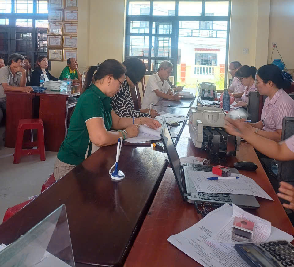 Phòng giao dịch NHCSXH Tuy An đang giải ngân vốn tại xã Tuy An Đông.