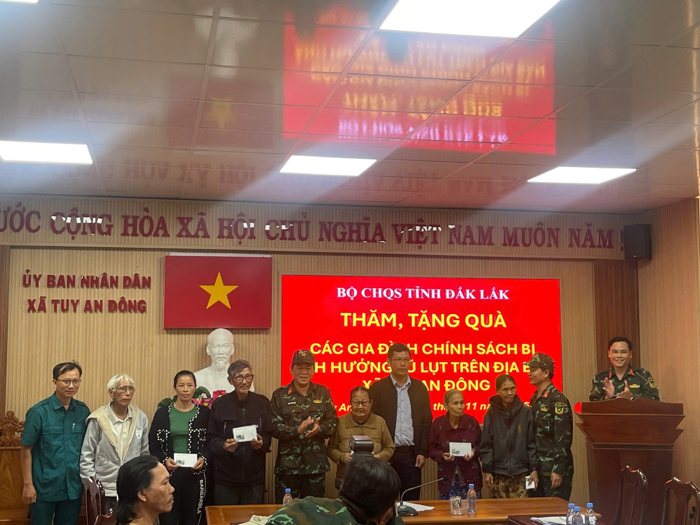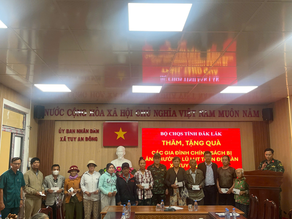 Vừa qua, Đoàn công tác Bộ Chỉ huy Quân sự tỉnh Đắk Lắk đã đến thăm và trao quà hỗ trợ các gia đình chính sách bị ảnh hưởng do mưa lũ trên địa bàn xã Tuy An Đông.