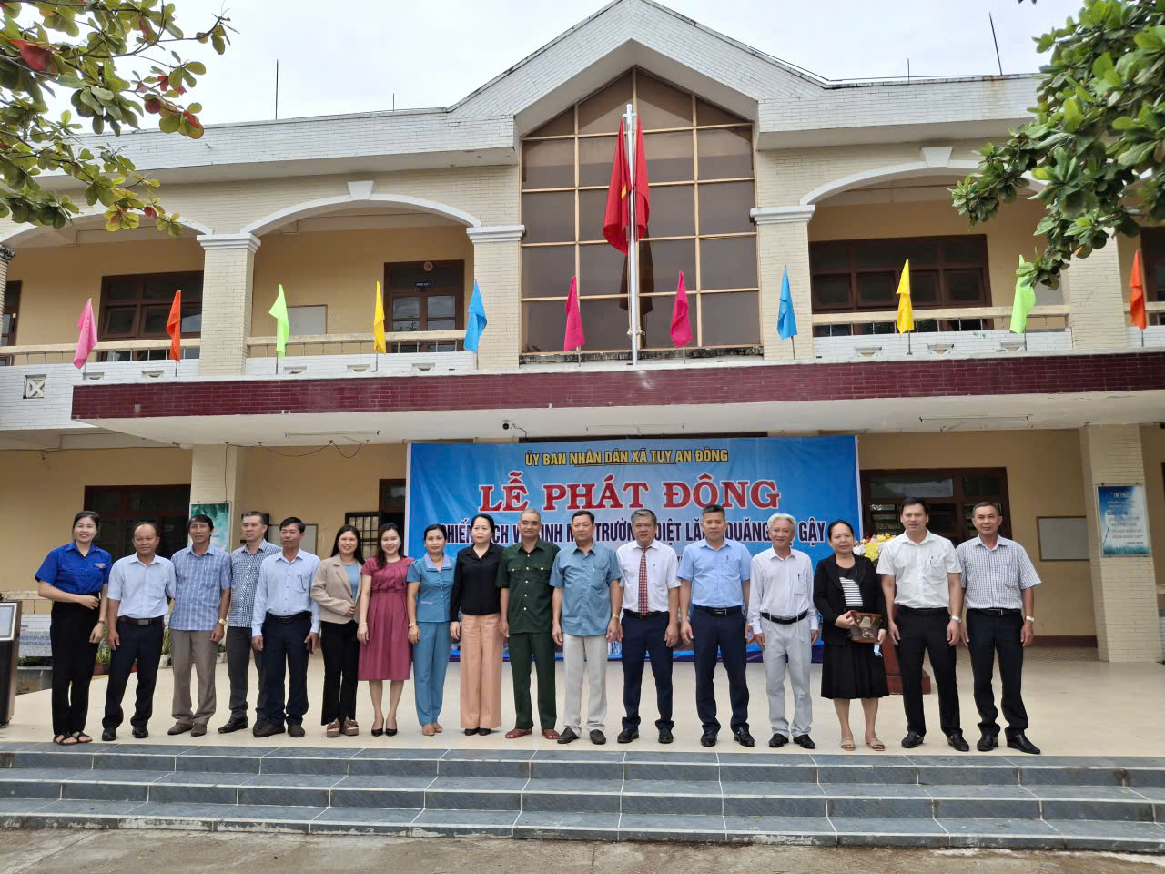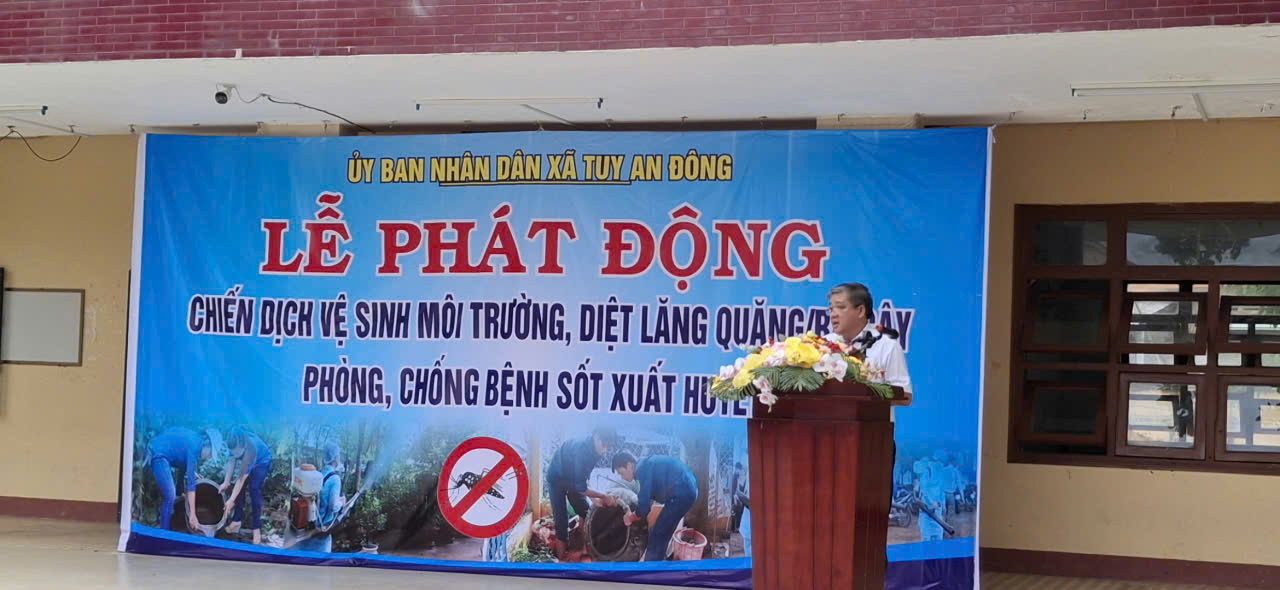 Tại Lễ ra quân UBND xã Tuy An Đông đã chỉ đạo phòng Văn hóa- Xã hội tổ chức triển khai diệt bọ gậy, chỉ đạo trạm y tế, cùng các ban ngành đoàn thể đến từng hộ gia đình để xử lý các dụng cụ chứa nước có bọ gậy như: Đậy kín các dụng cụ chứa nước bằng nắp, vải áo mưa ngăn không cho muỗi bay vào đẻ trứng. Súc rửa hoặc thả cá hoặc các tác nhân sinh học khác trong dụng cụ chứa nước sinh hoạt hoặc chậu cây cảnh. Lật úp các vật dụng chứa nước nhỏ như xô, chậu, bát, máng nước gia cầm. Thu gom, loại bỏ vật dụng, phế thải gây đọng nước (chai, lọ, vỏ đồ hộp, lốp xe hỏng, vỏ dừa...). Thay nước lọ hoa, khay nước tủ lạnh, điều hòa, khay nước quạt hơi nước để ngăn lăng quăng/bọ gậy phát triển. Đồng thời, qua đó tuyên truyền, nâng cao nhận thức của người dân cùng phối hợp diệt bọ gậy, vận động các hộ gia đình thường xuyên duy trì các biện pháp diệt bọ gậy như trên. Hướng dẫn và nhắc nhở người dân ngủ nằm màn, đặc biệt cho người bệnh sốt xuất huyết nằm màn kể cả ban ngày để hạn chế nguồn lây và đến cơ sở y tế khi có triệu chứng của bệnh sốt xuất huyết.