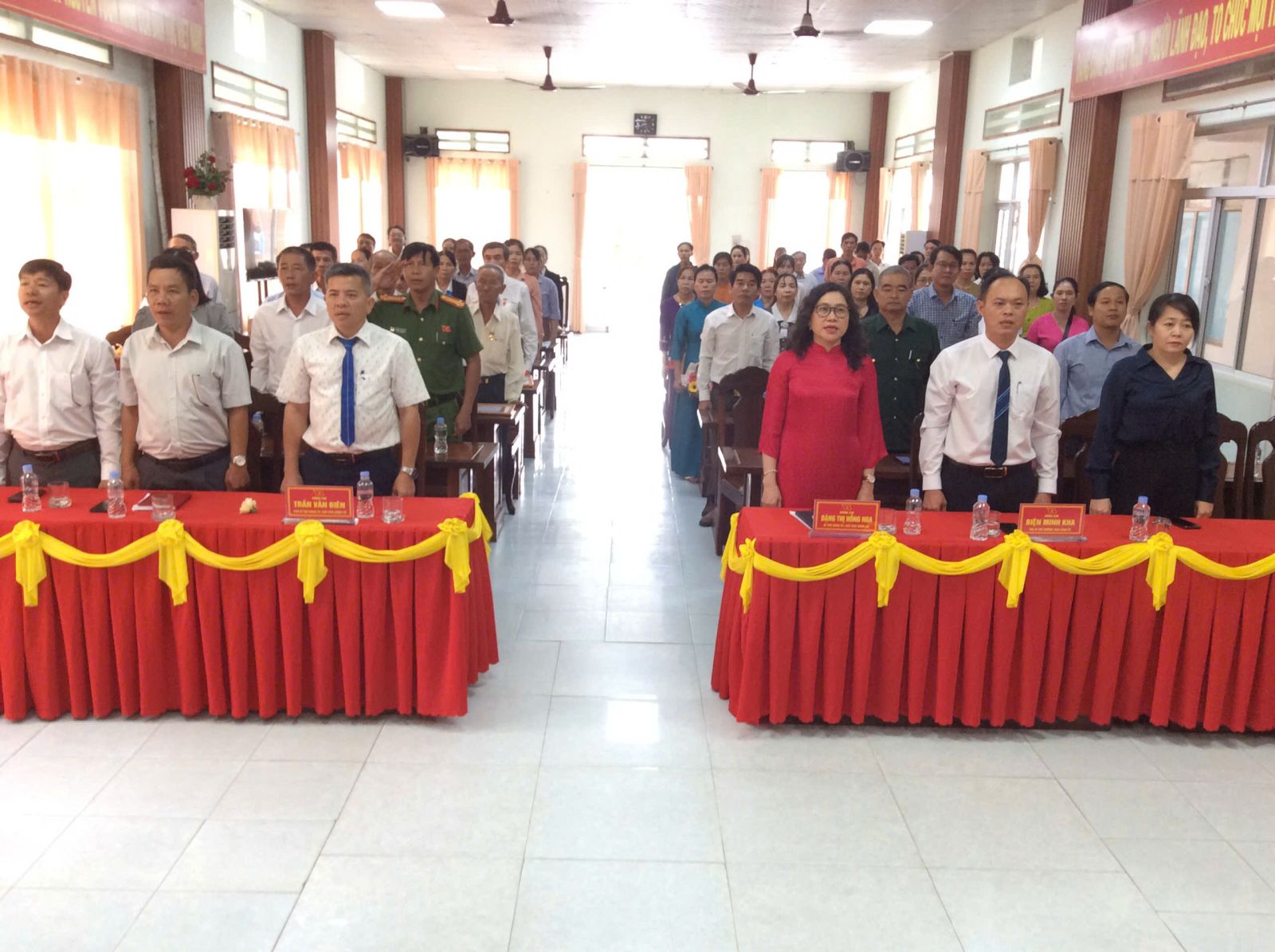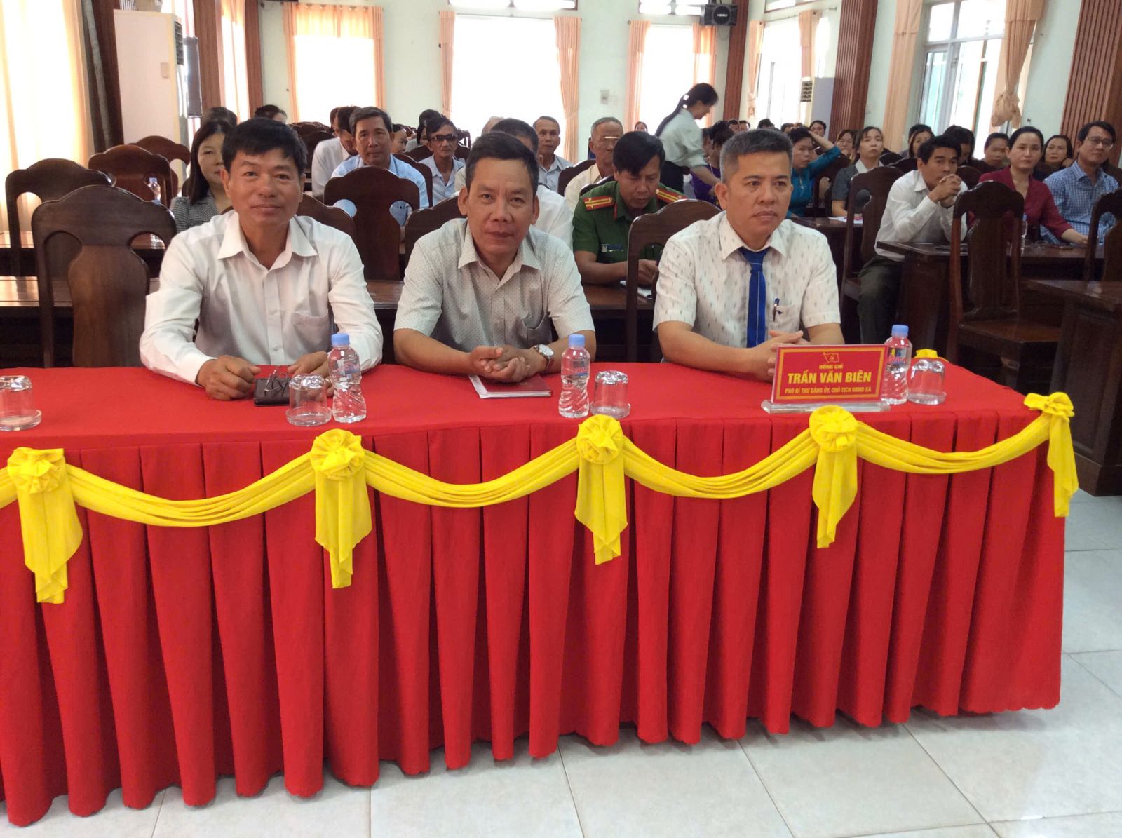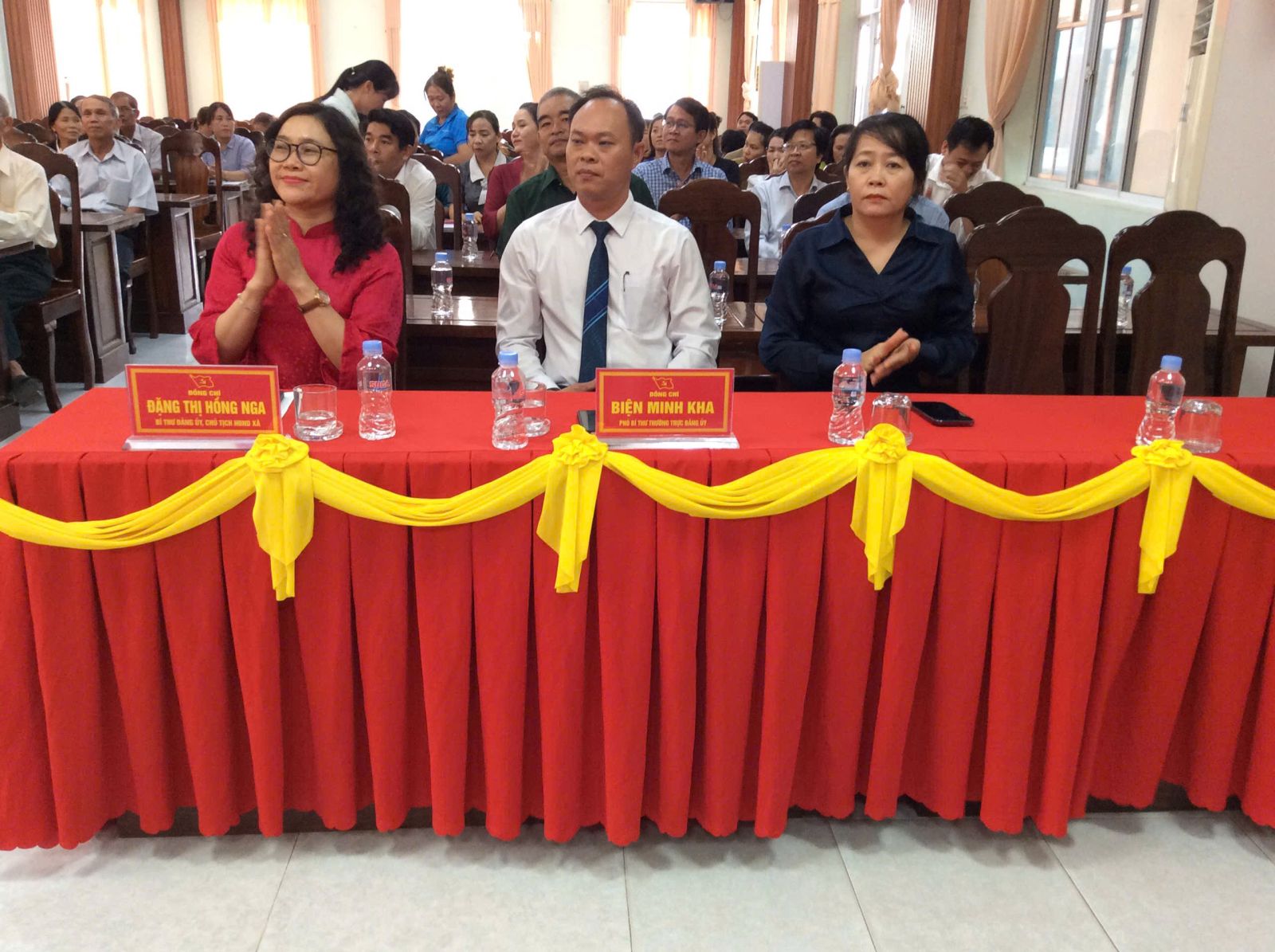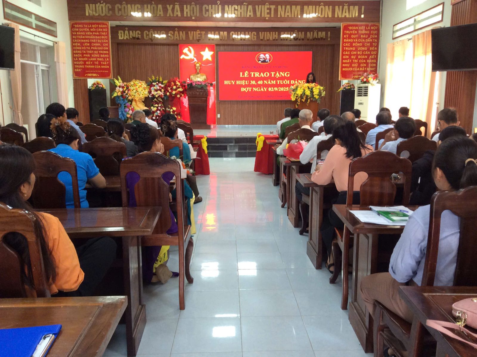 Đ/c Biện Minh Kha, Phó Bí thư thường trực Đảng ủy và Đ/c Trần Văn Biên, Phó Bí thư Đảng ủy, Chủ tịch UBND xã trao Huy hiệu Đảng cho 05 Đảng viên 30 tuổi Đảng