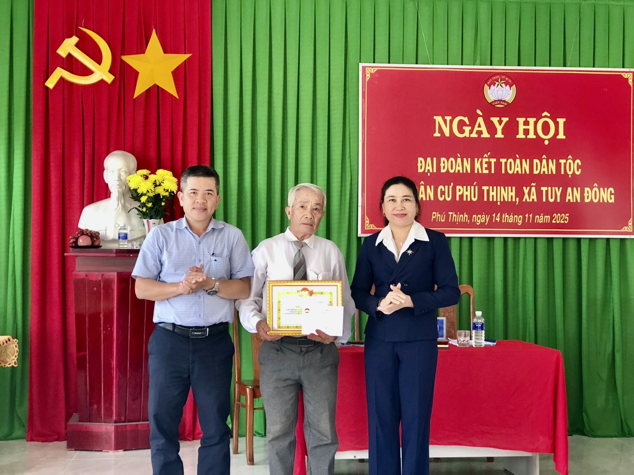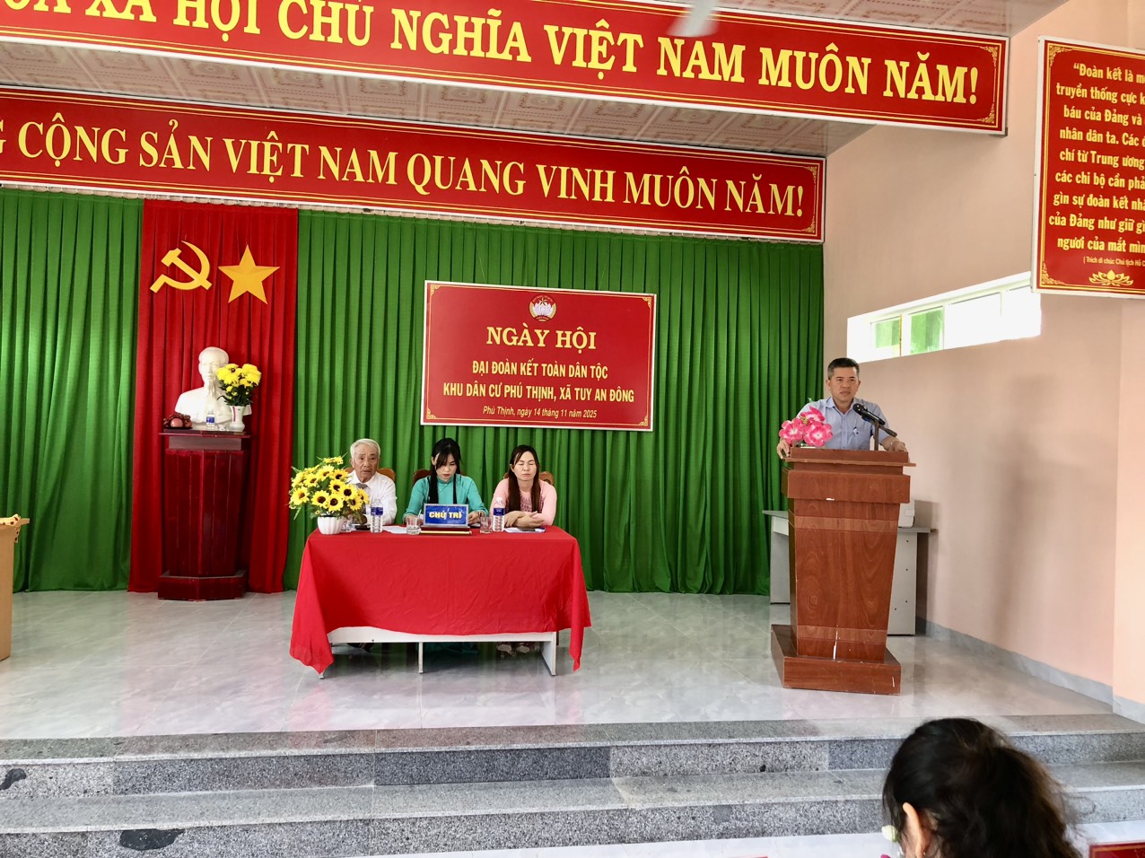 Sáng ngày 14/11/2025, khu dân cư Phú Thịnh, xã Tuy An Đông tổ chức Ngày hội Đại đoàn kết toàn dân tộc. Đây là dịp để bà con gặp gỡ, cùng nhìn lại kết quả thực hiện Cuộc vận động “Toàn dân đoàn kết xây dựng nông thôn mới, đô thị văn minh” trong năm qua.