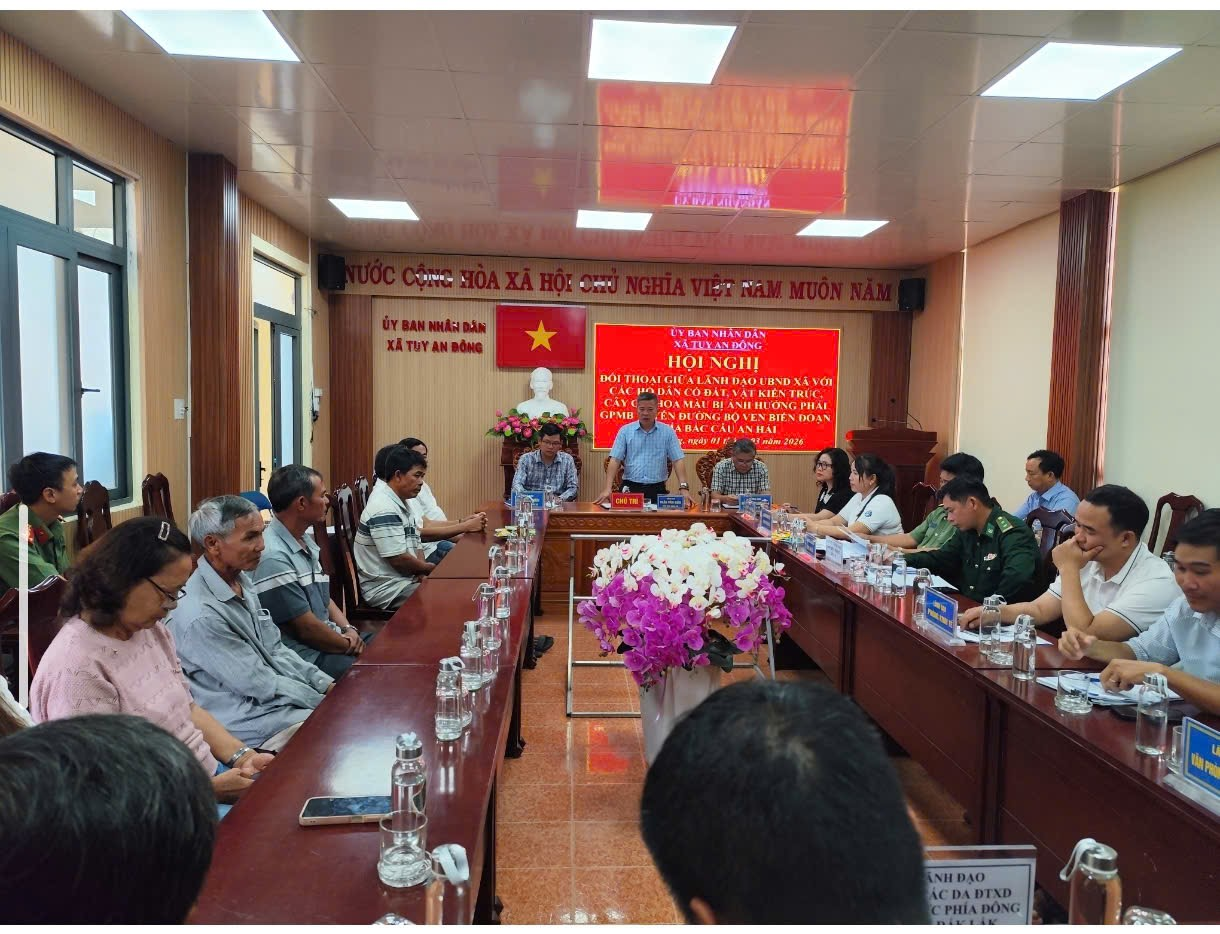 Sáng 01/3, UBND xã Tuy An Đông tổ chức Hội nghị đối thoại với hộ dân bị ảnh hưởng bởi Dự án Tuyến đường bộ ven biển đoạn phía Bắc cầu An Hải. Đ/C Trần Văn Biên, Phó Bí thư Đảng uỷ, Chủ tịch UBND xã chủ trì Hội nghị. Các đ/c Thường trực Đảng uỷ, HĐND, UBND, Uỷ ban MTTQ Việt Nam xã, lãnh đạo các cơ quan liên quan cùng tham gia Hội nghị này.