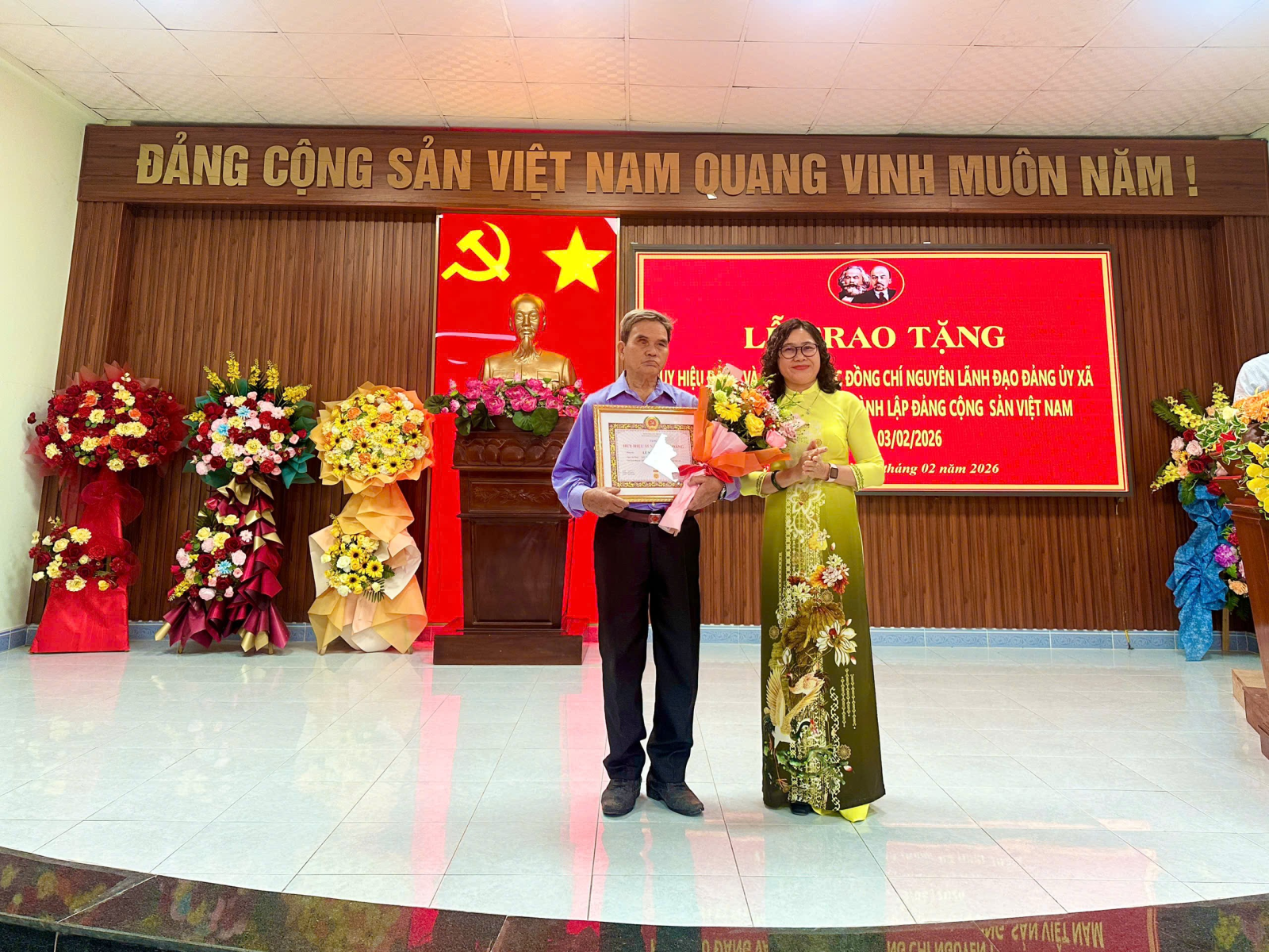 Sáng 03/2, Đảng ủy, HĐND, UBND, UBMTTQ VN xã Tuy An Đông long trọng tổ chức Lễ kỷ niệm 96 năm Ngày thành lập Đảng Cộng sản Việt Nam (3/2/1930 - 3/2/2026) và trao tặng huy hiệu Đảng cho đảng viên.