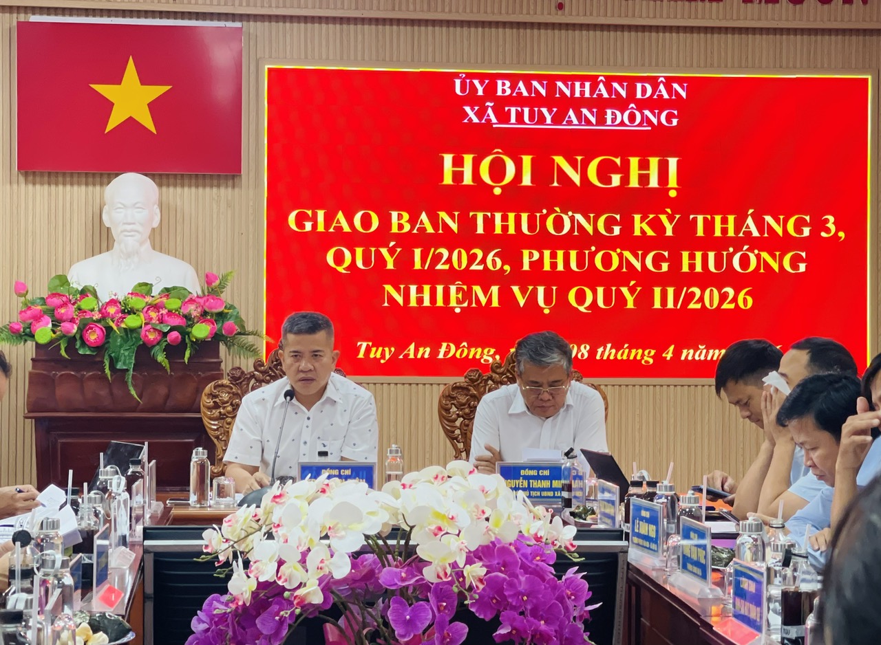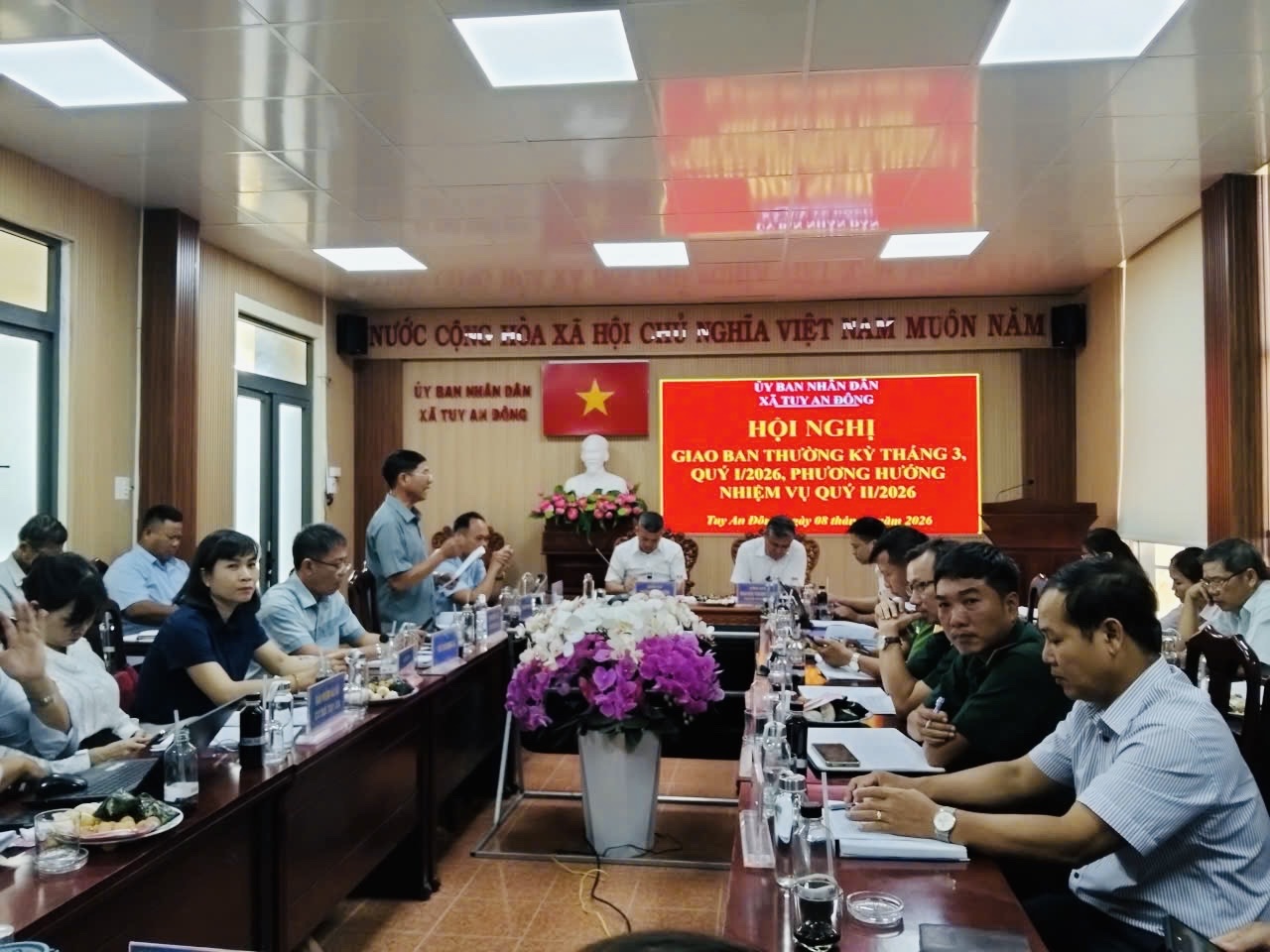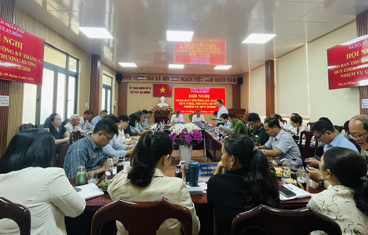 Chiều ngày 08/4/2026, UBND xã Tuy An Đông tổ chức Hội nghị Giao ban thường kỳ tháng 3, quý I/2026, phương hướng nhiệm vụ quý II/2026.