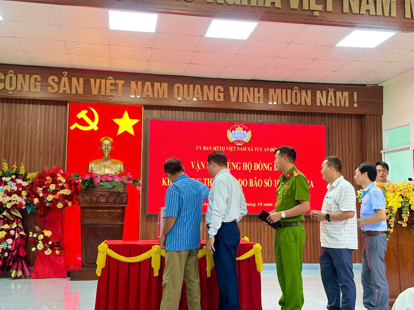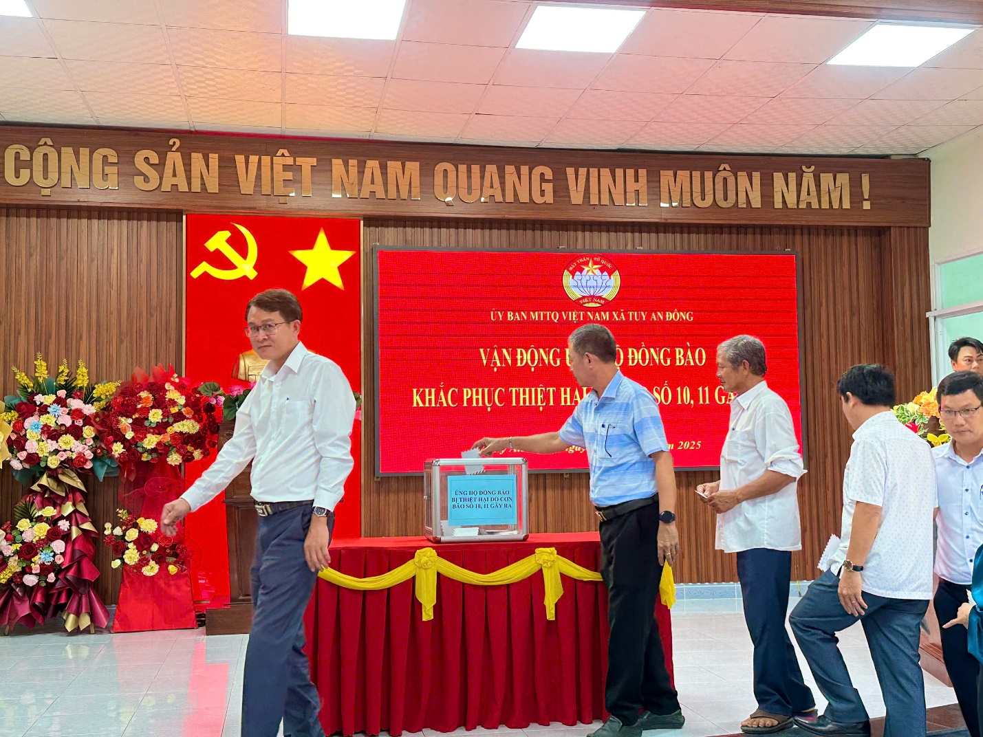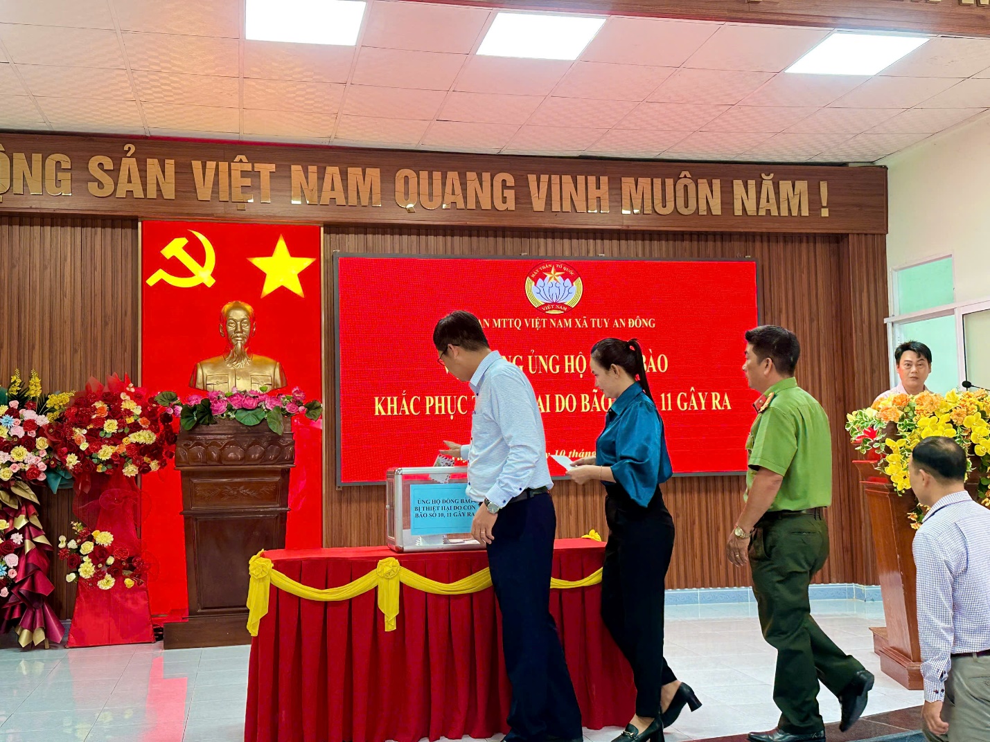 Chiều ngày 10/10, Ủy ban Mặt trận Tổ quốc Việt Nam xã Tuy An Đông tổ chức vận động ủng hộ đồng bào các địa phương bị thiệt hại do bão số 10 và số 11 gây ra.