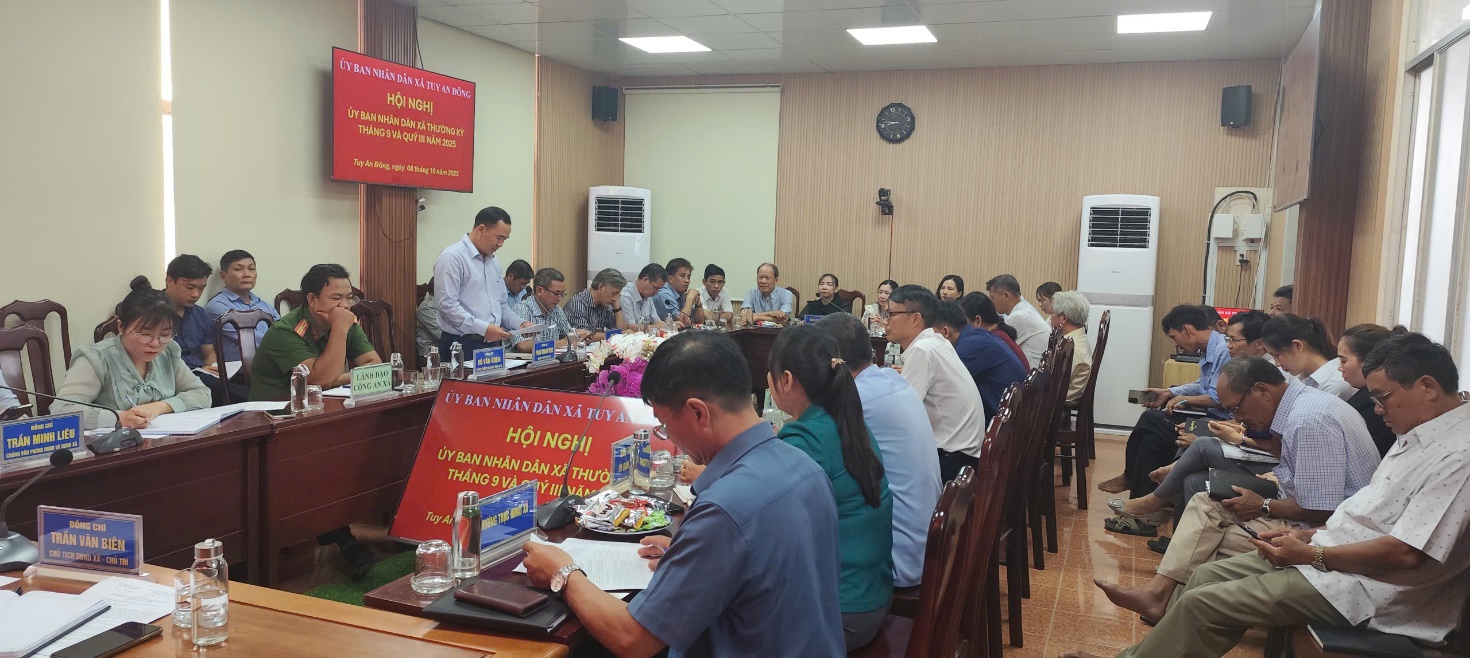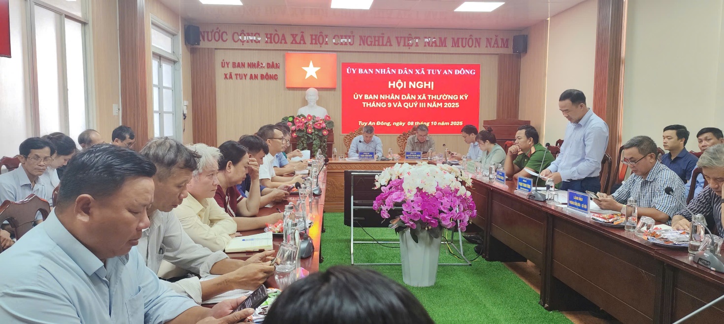 Sáng ngày 08/10/2025, Ủy ban nhân dân xã Tuy An Đông tổ chức hội nghị UBND thường kỳ tháng 9 và quý III năm 2025 nhằm đánh giá tình hình phát triển kinh tế - xã hội, quốc phòng - an ninh trong 9 tháng đầu năm và triển khai nhiệm vụ quý IV/2025.