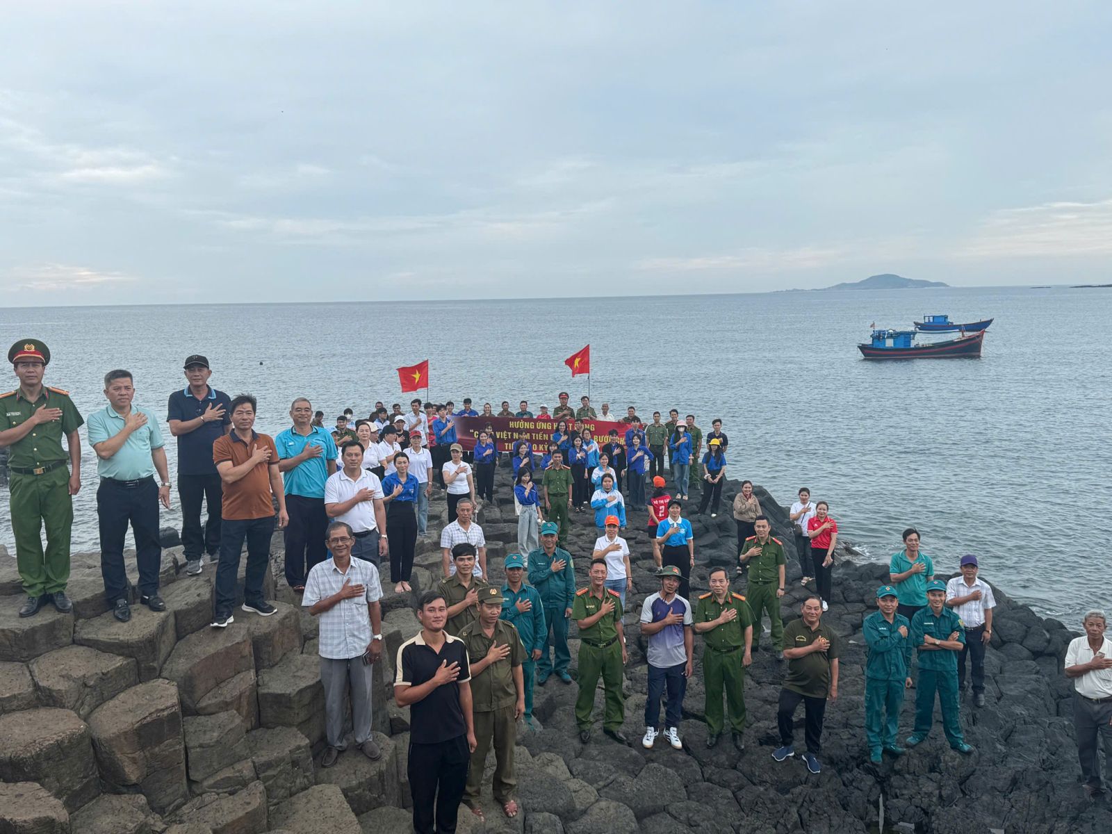 Sau lễ phát động toàn thể cán bộ, công chức, viên chức, người lao động, lực lượng vũ trang và Nhân dân trên địa bàn xã tiến hành đi bộ về danh thắng cấp Quốc Gia Gành Đá Đĩa./.